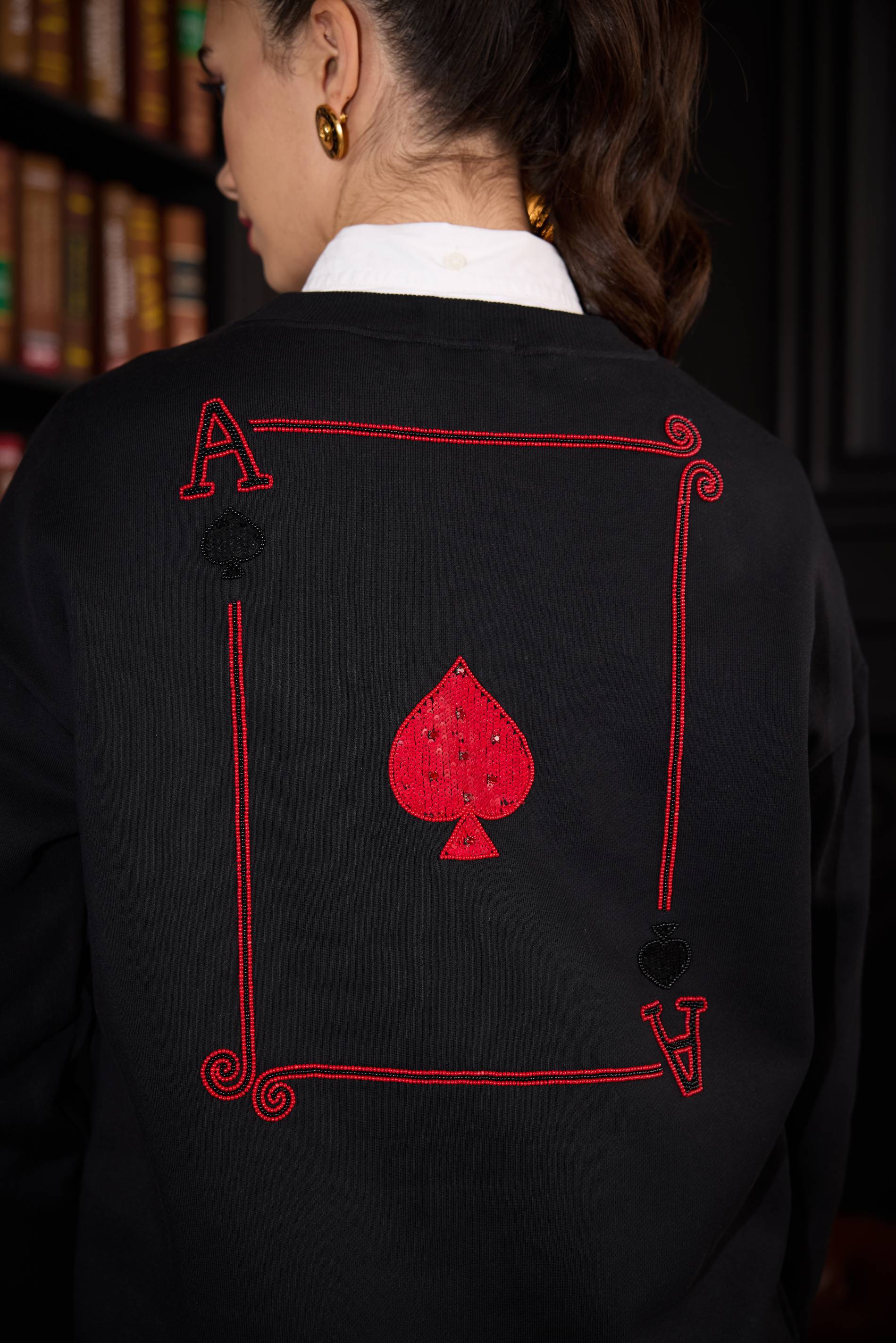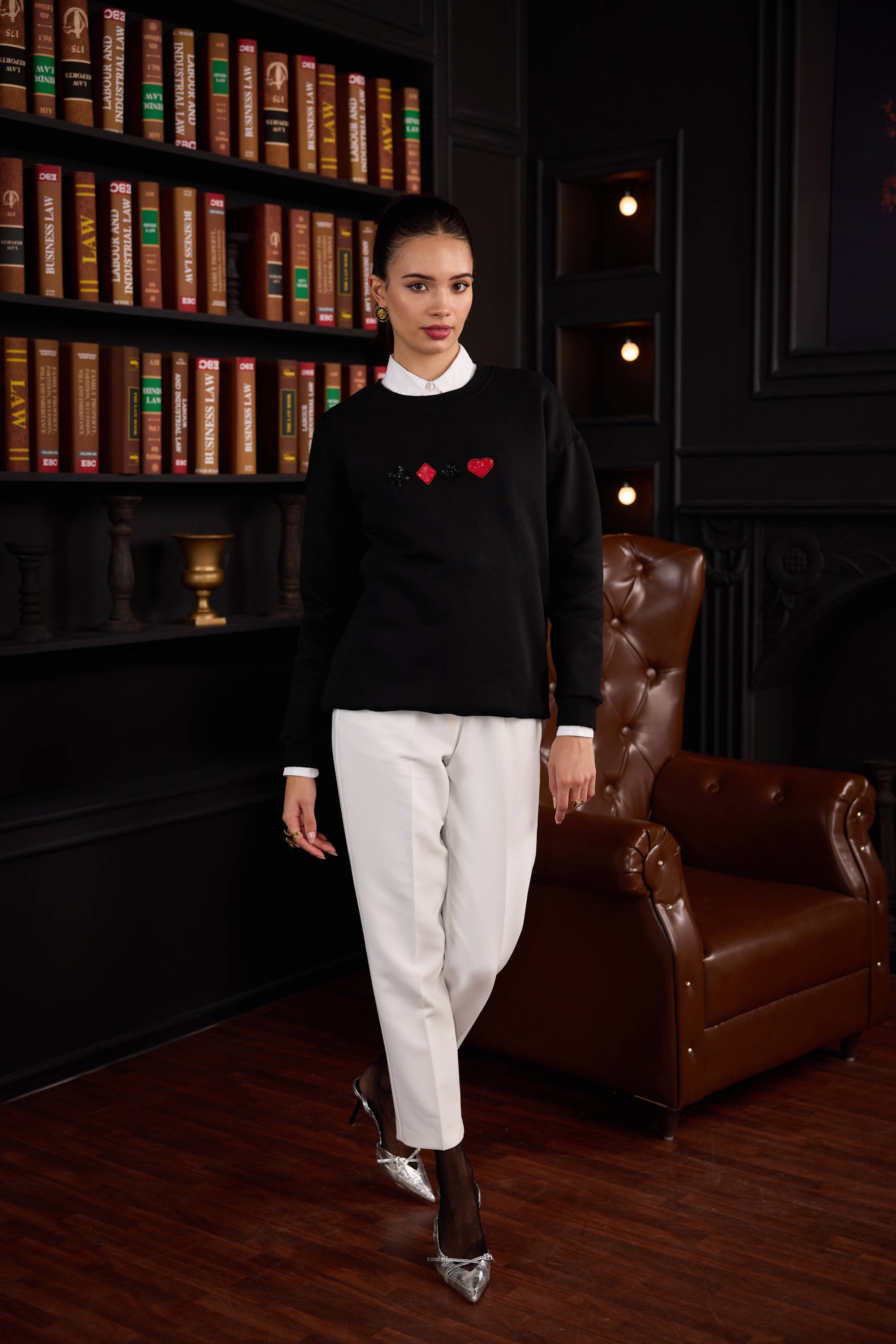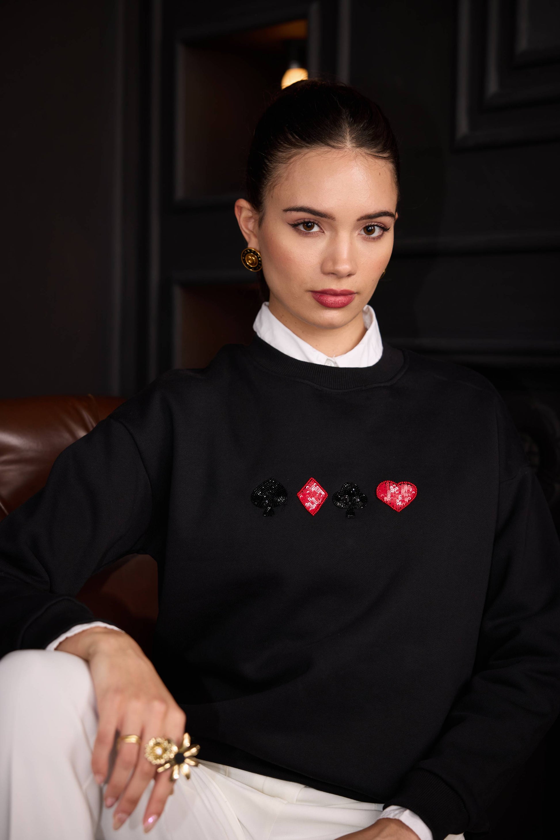 Fleece Sweatshirt hand embroidered with Swarovski & Stones making beautiful card motifs, perfect pick for Diwali season.