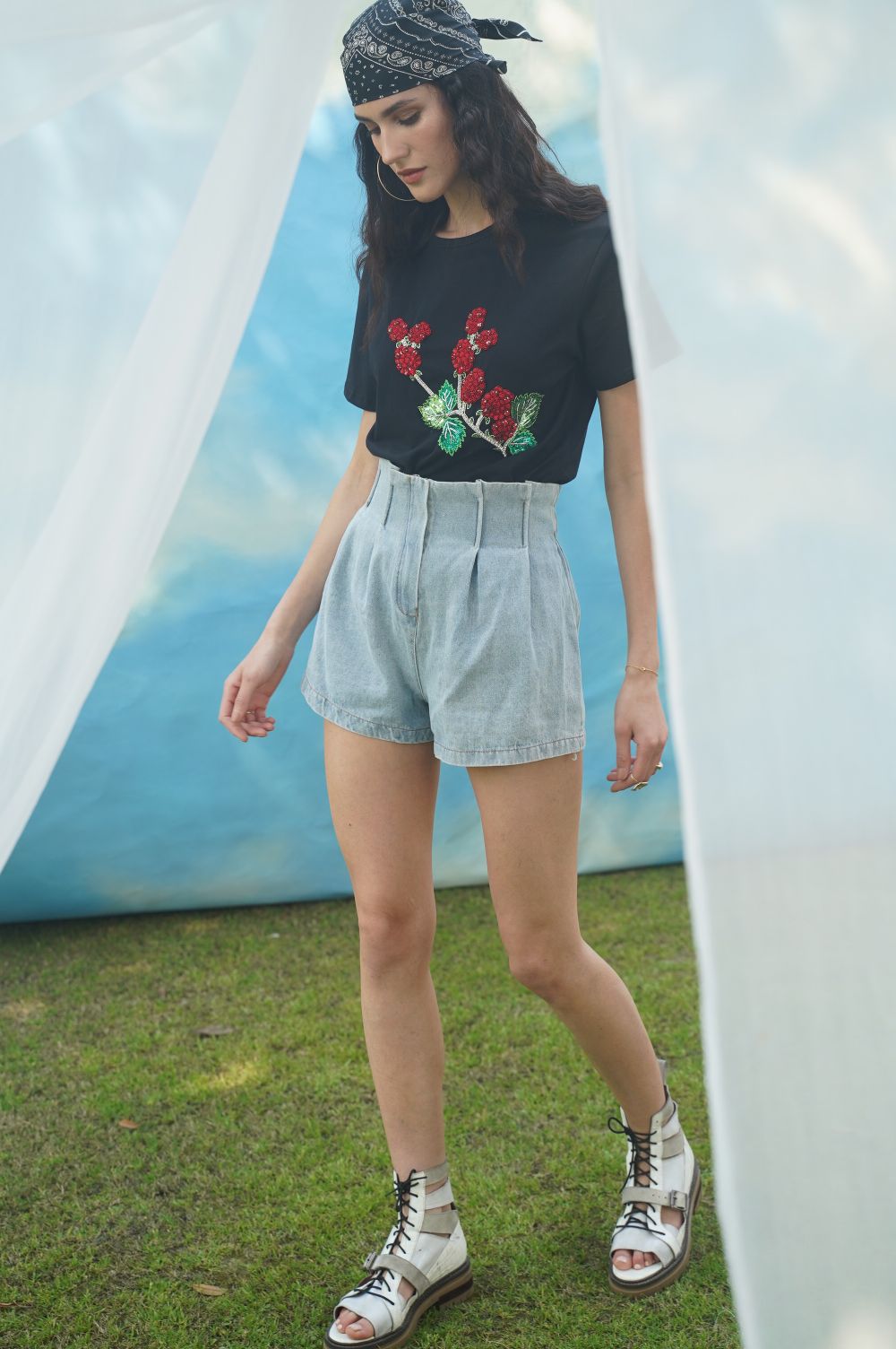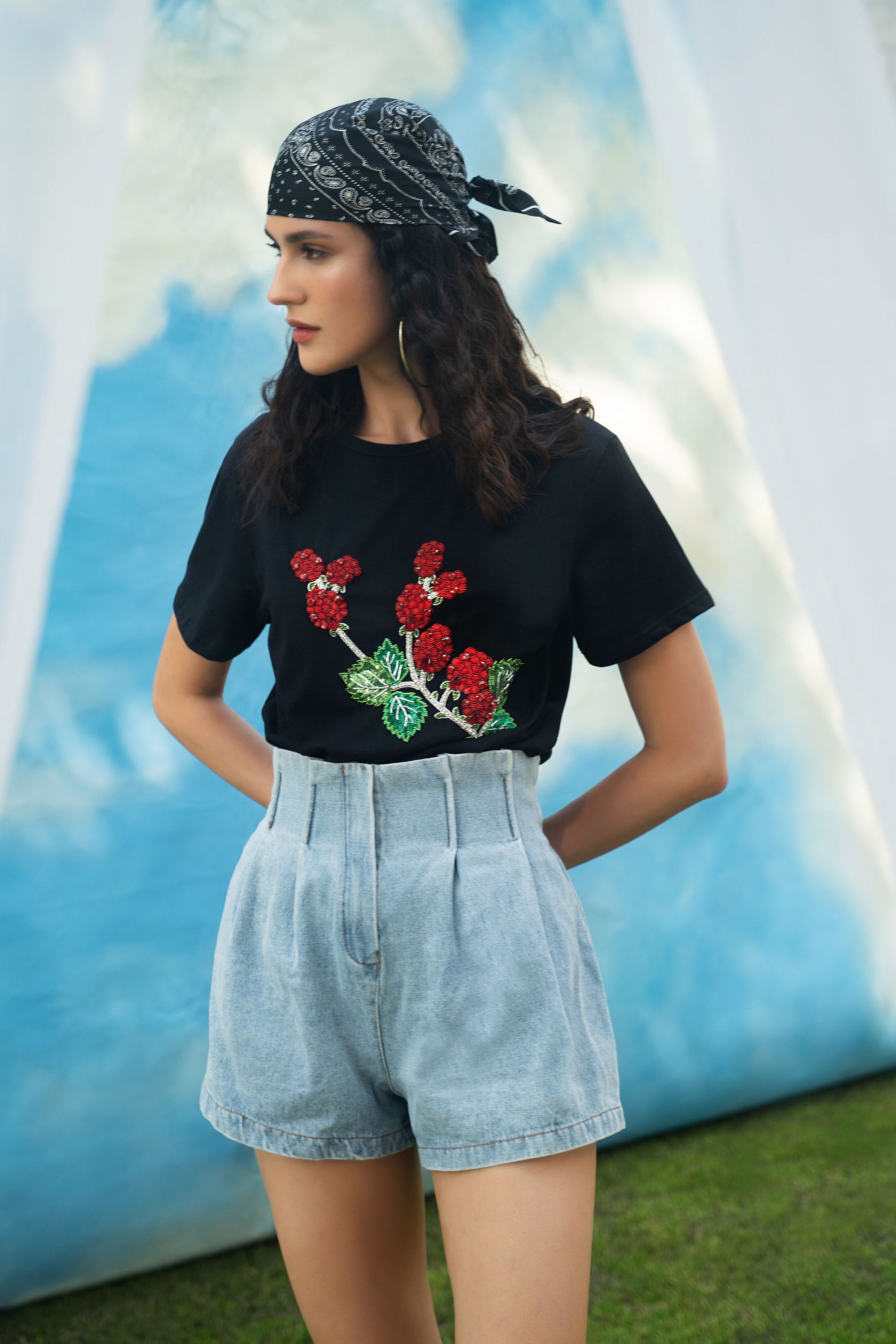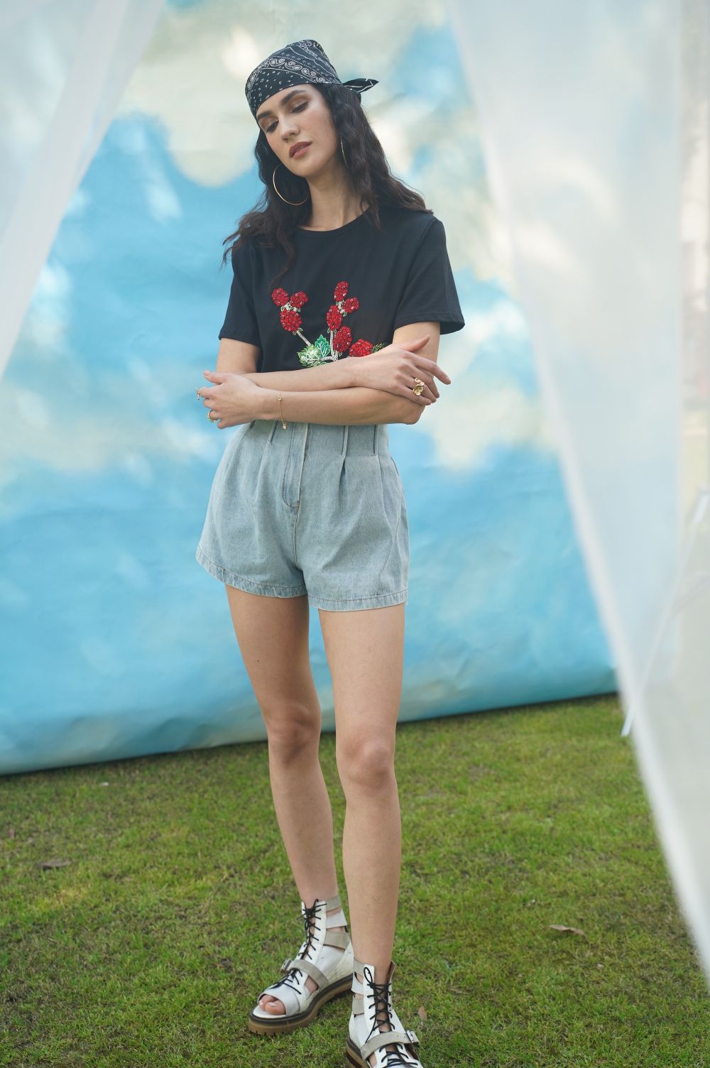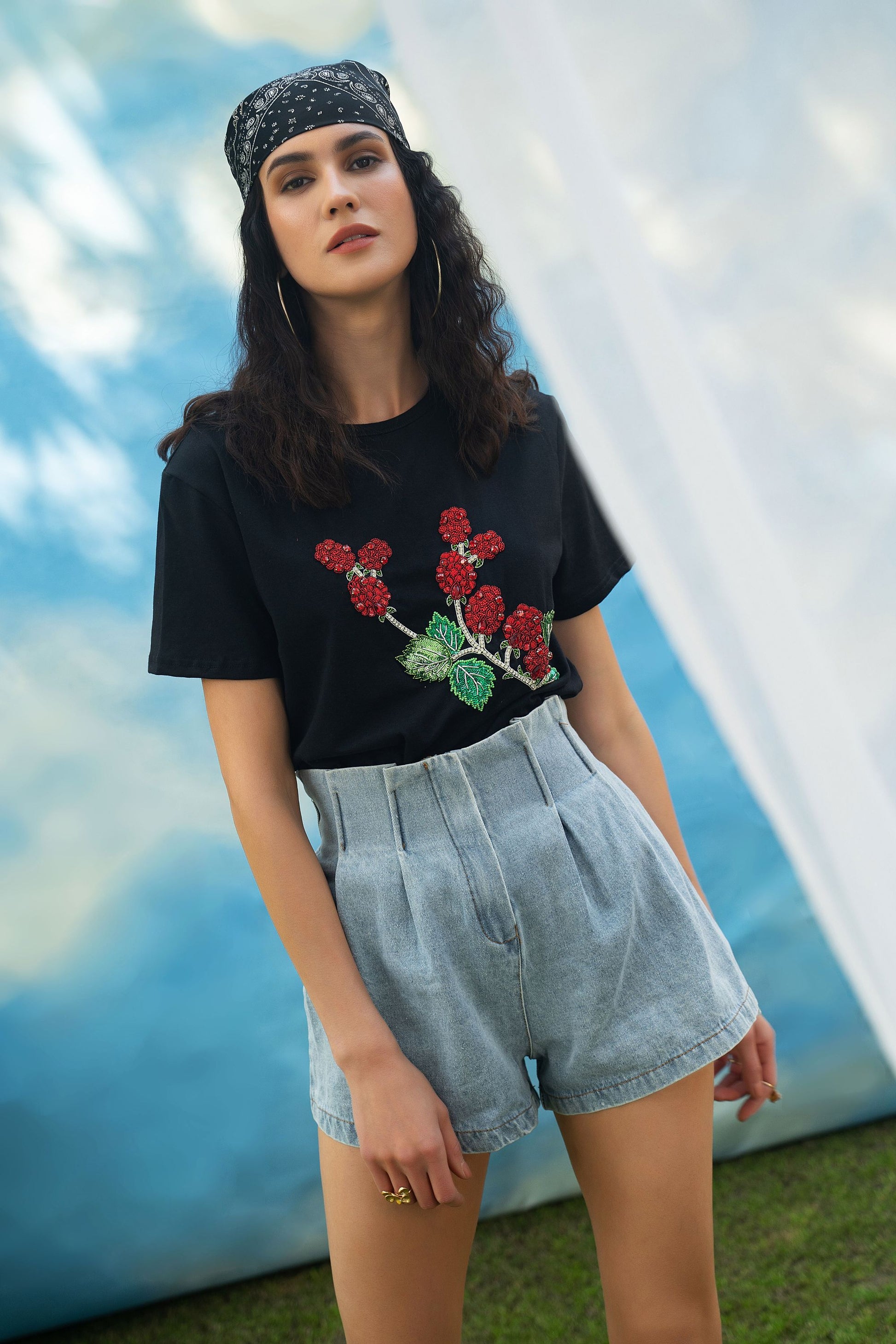 BOYFRIEND FIT ORGANIC COTTON T- SHIRT, HAND EMBROIDERED WITH SEQUINS AND SWAROVSKI.