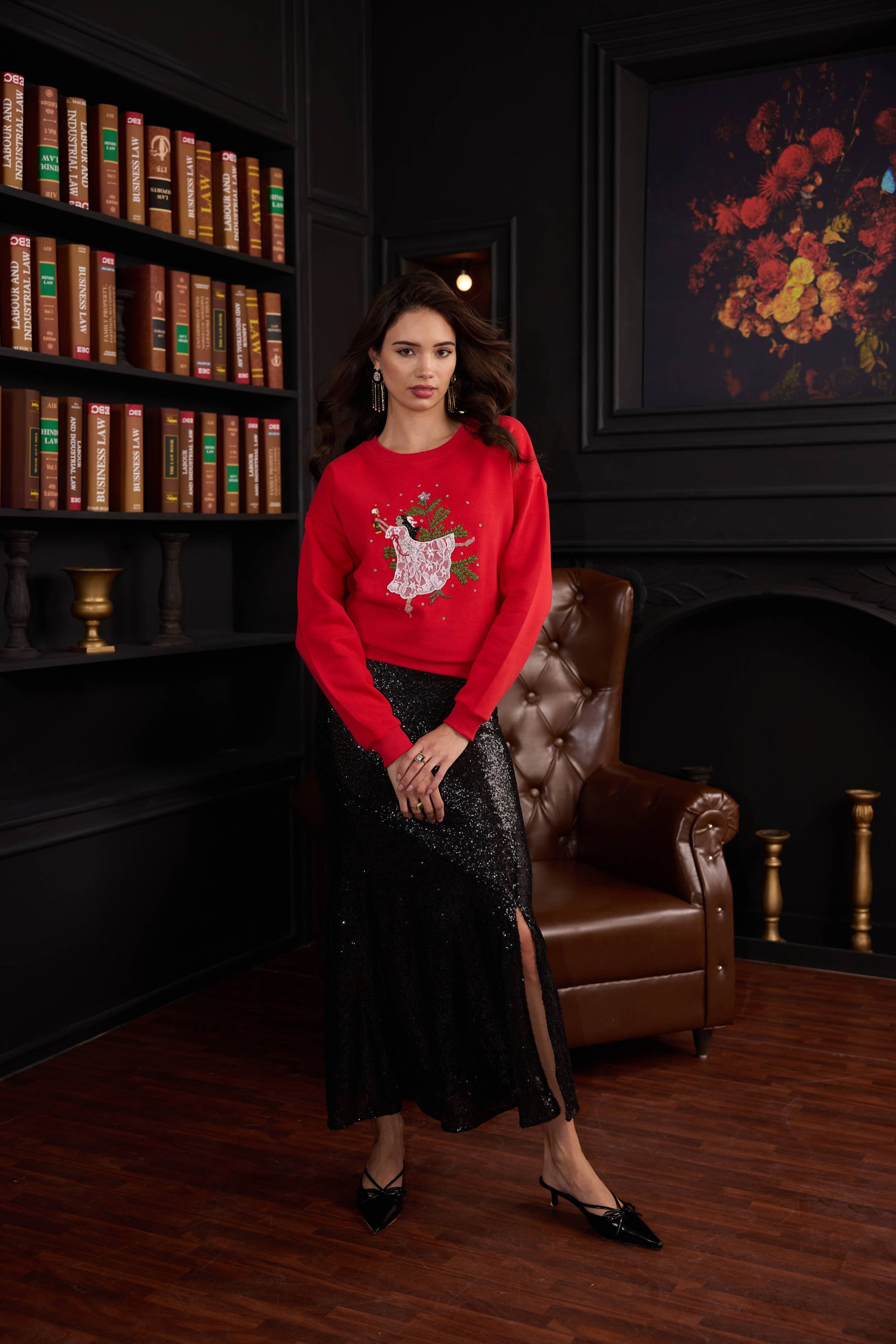 Fleece Sweatshirt hand embroidered with Swarovski & Stones making a beautiful Christmas motifs all over the sweatshirt.