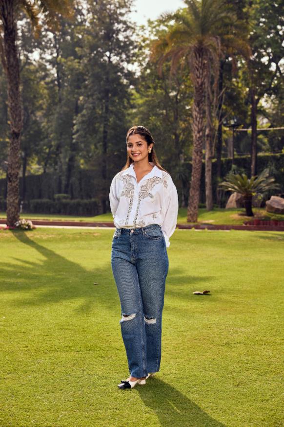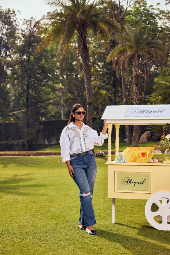 Organic cotton shirt, detailed with lace patchwork all over the shirt.