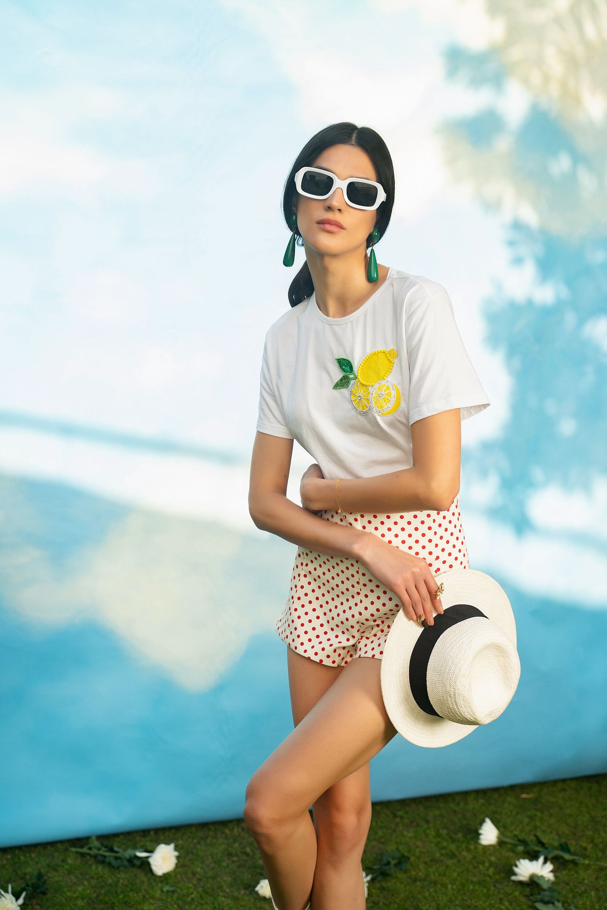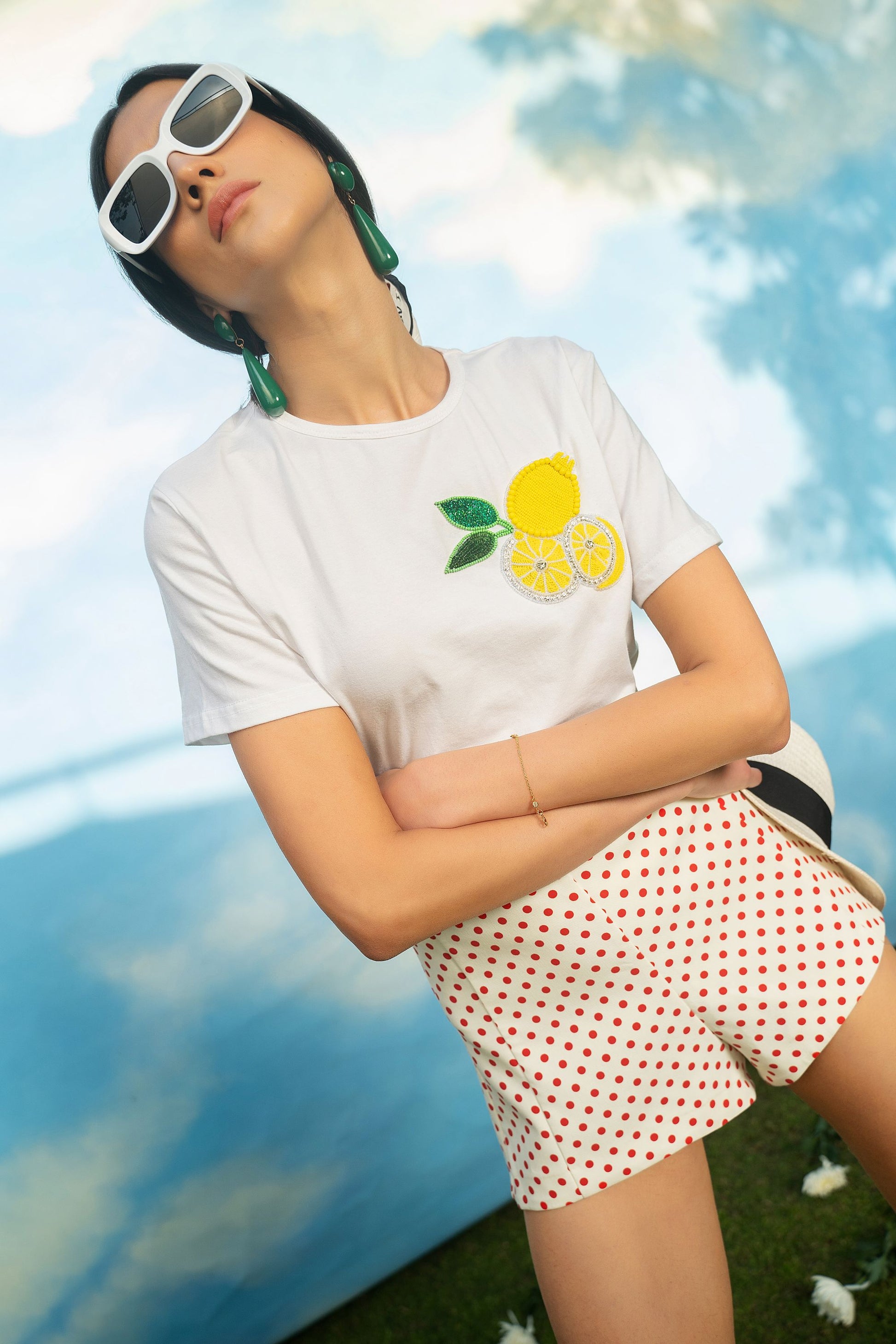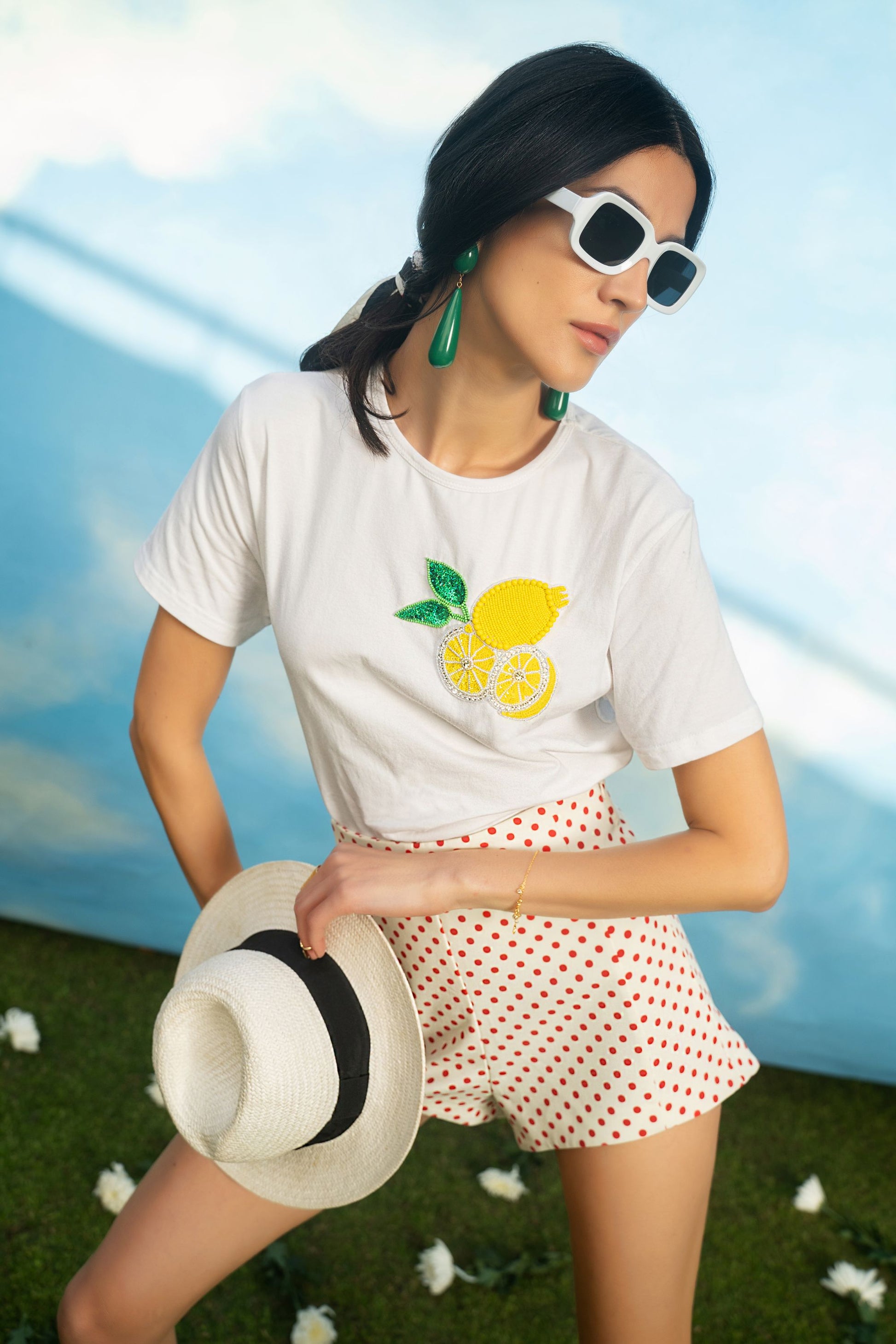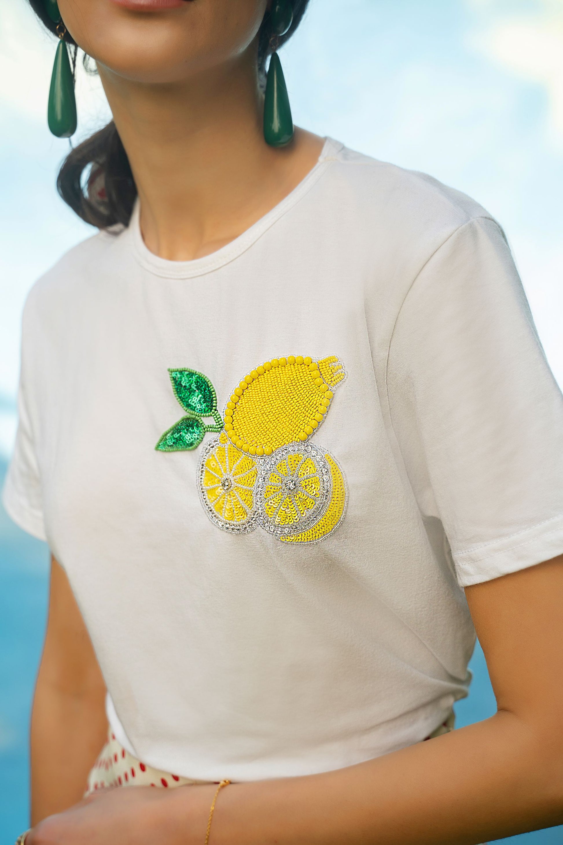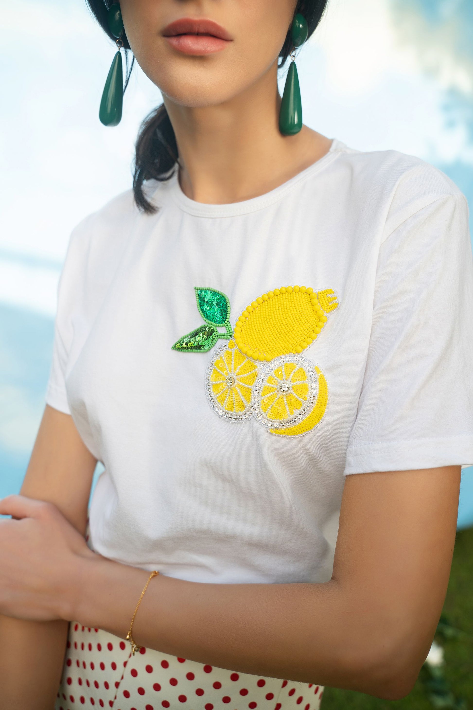 BOYFRIEND FIT ORGANIC COTTON TSHIRT, HAND EMBROIDERED WITH SEQUINS AND SWAROVSKI.