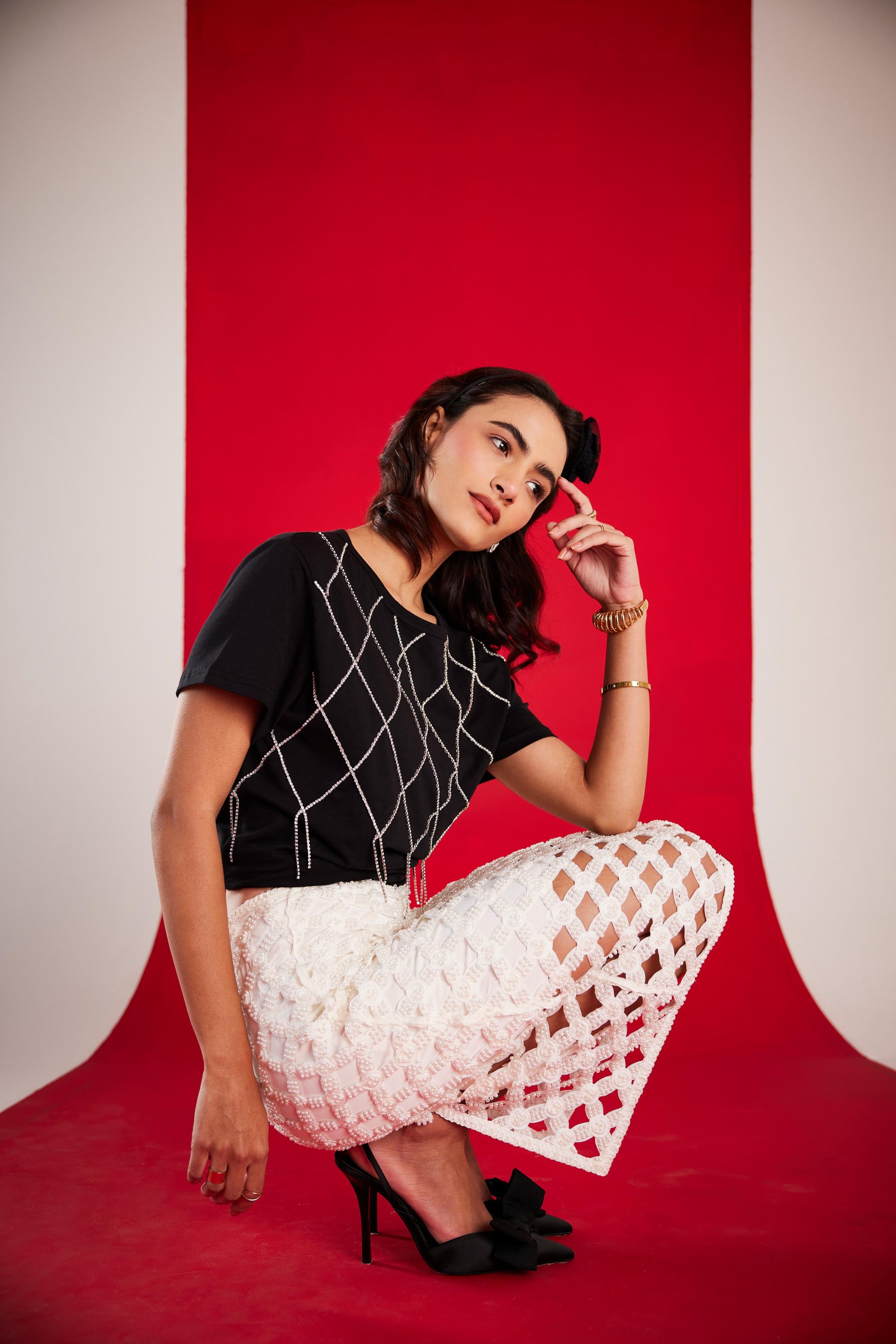 All the embroidery is hand made with sequins stones beads and Swarovski.