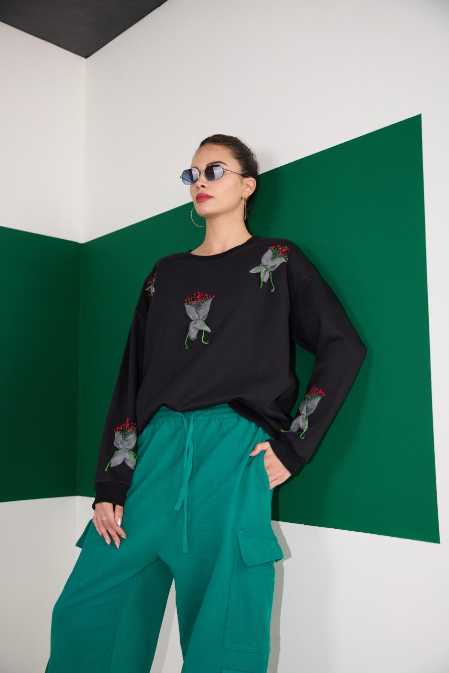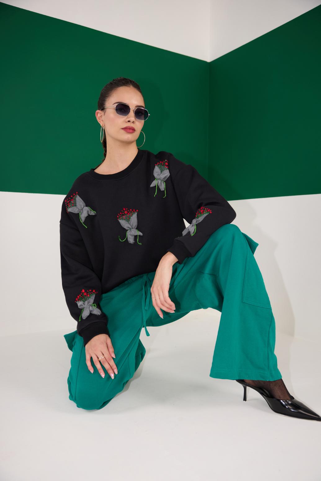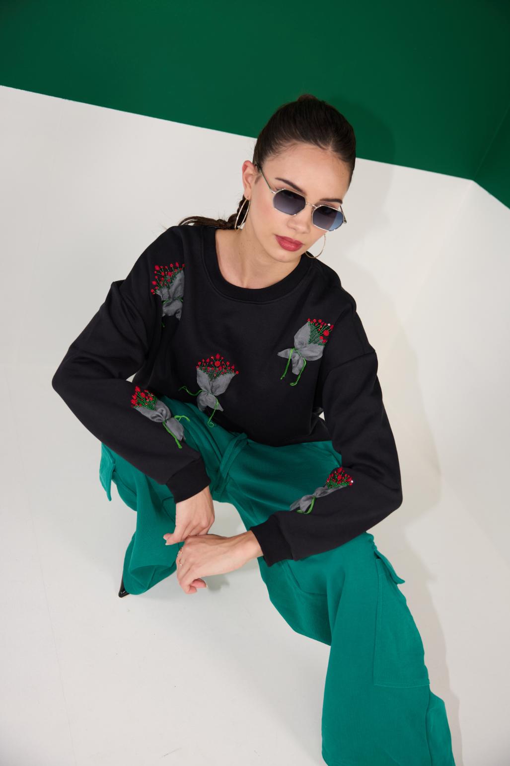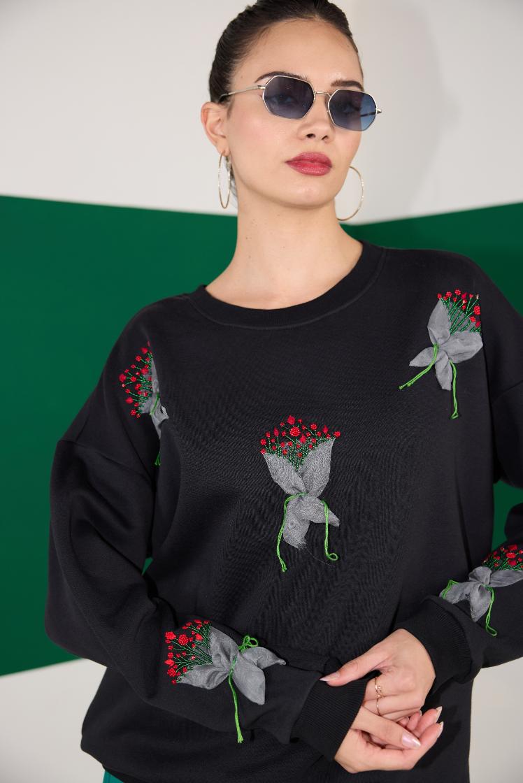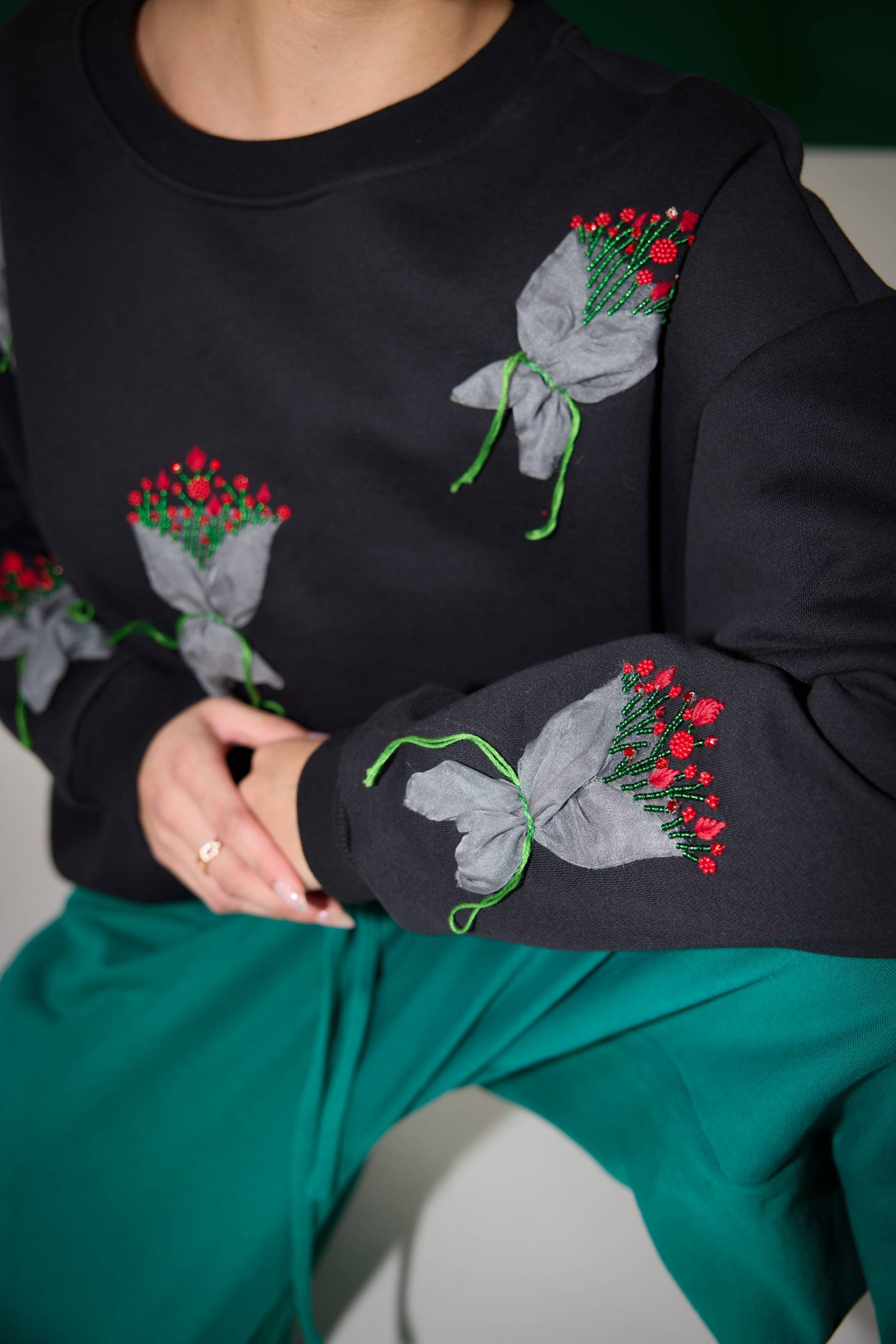 Fleece Sweatshirt with organza ruffle detailing and hand embroidered with Swarovski &