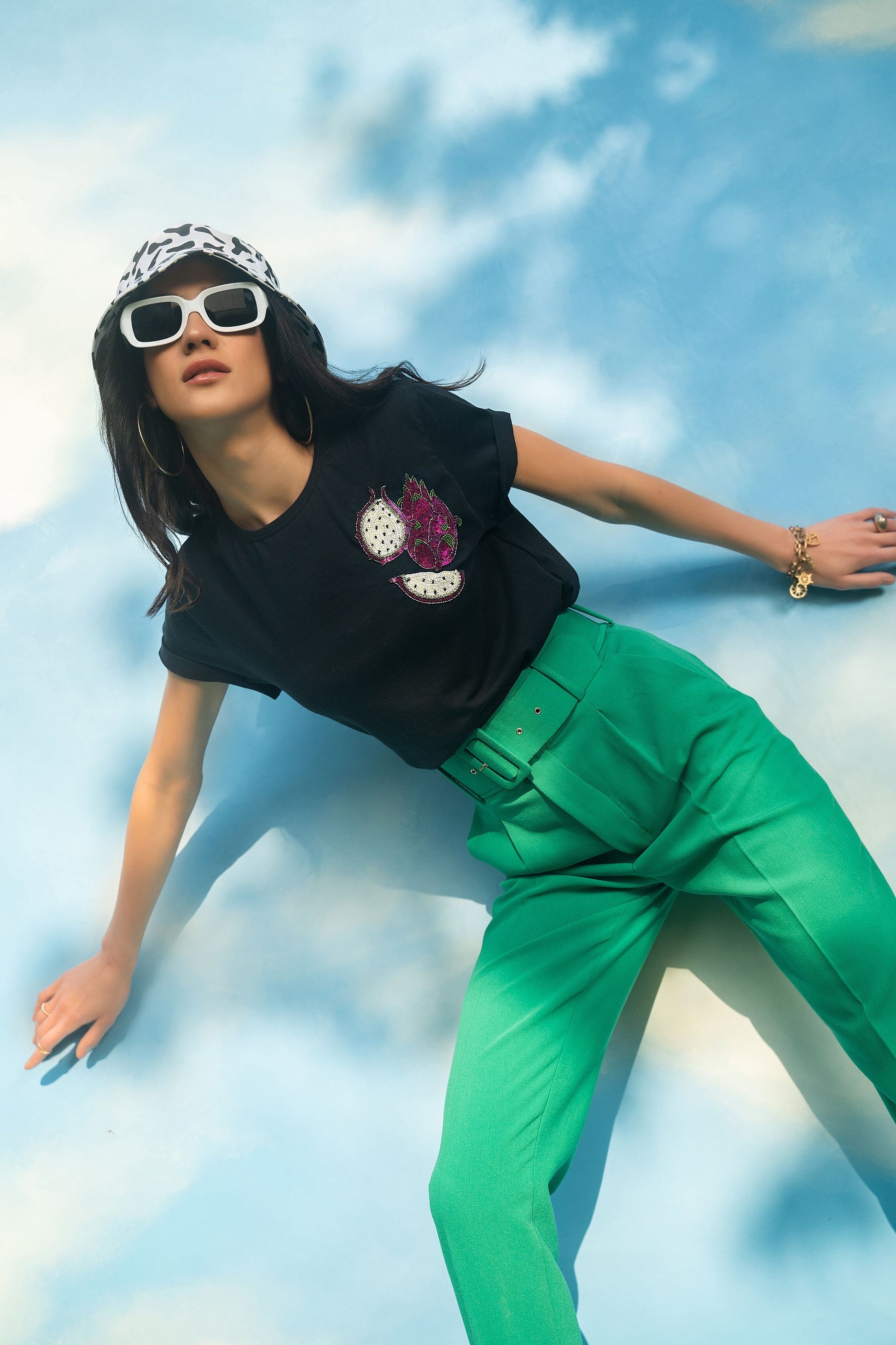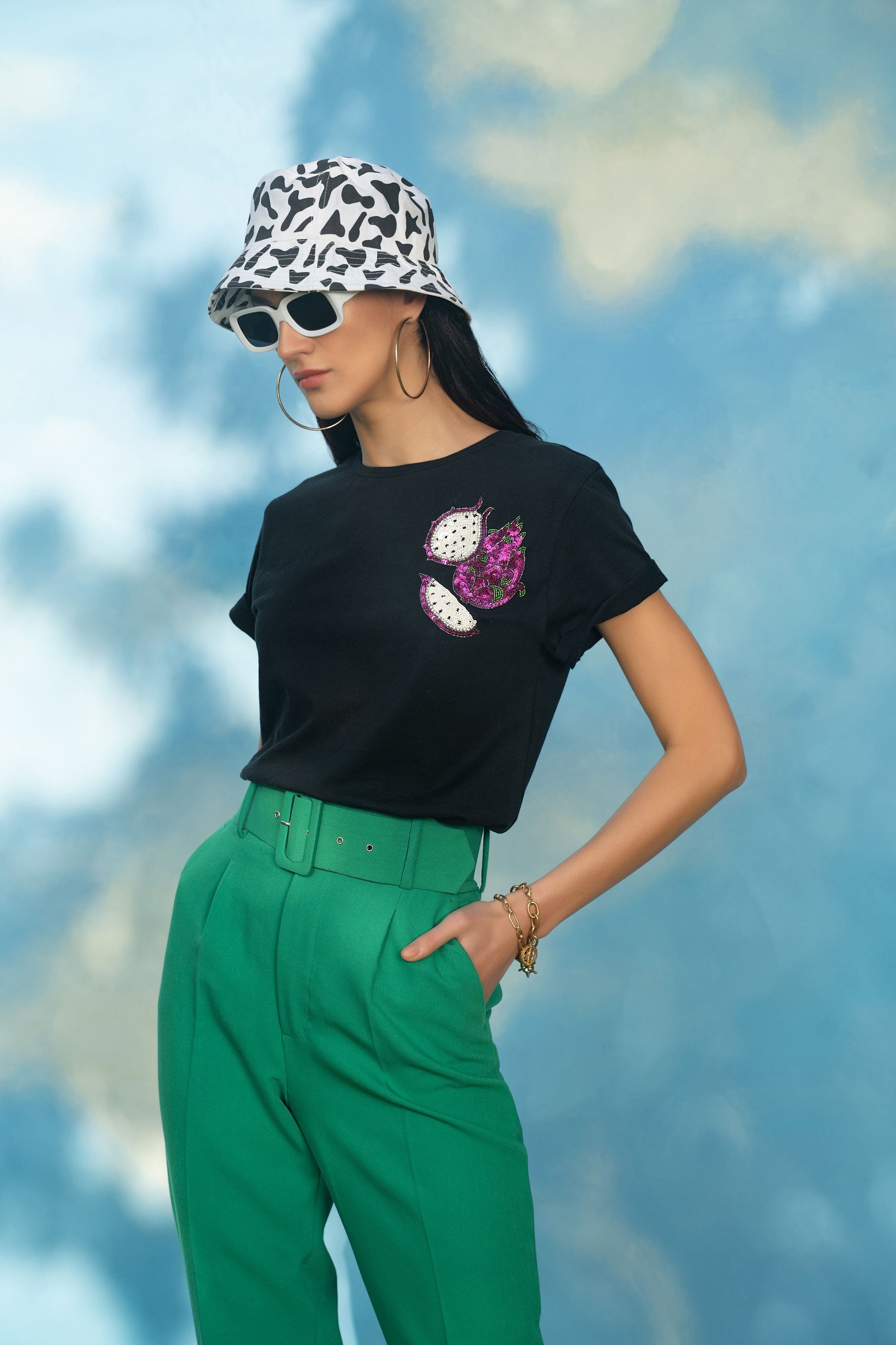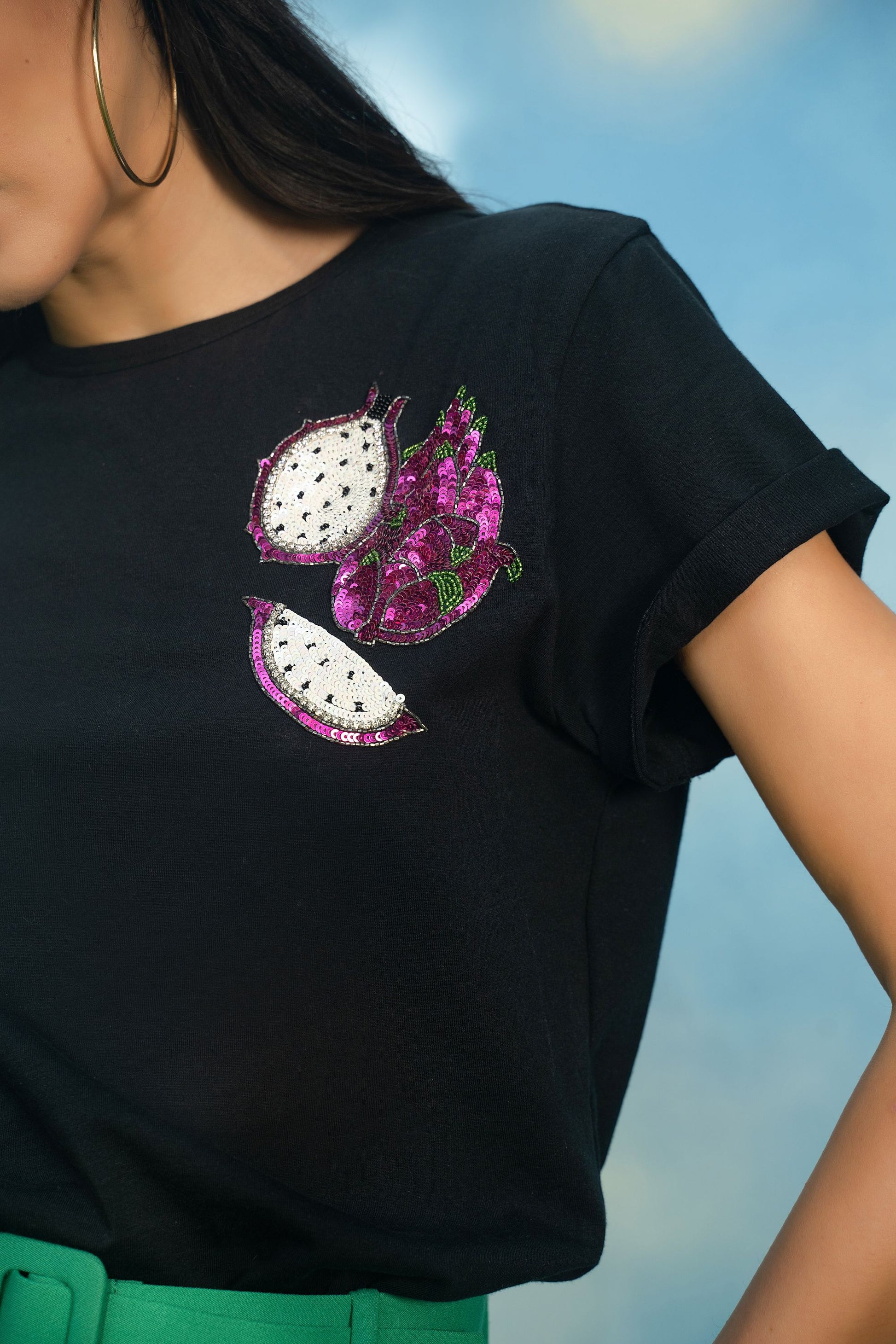 BOYFRIEND FIT ORGANIC COTTON TSHIRT, HAND EMBROIDERED WITH SEQUINS AND SWAROVSKI.