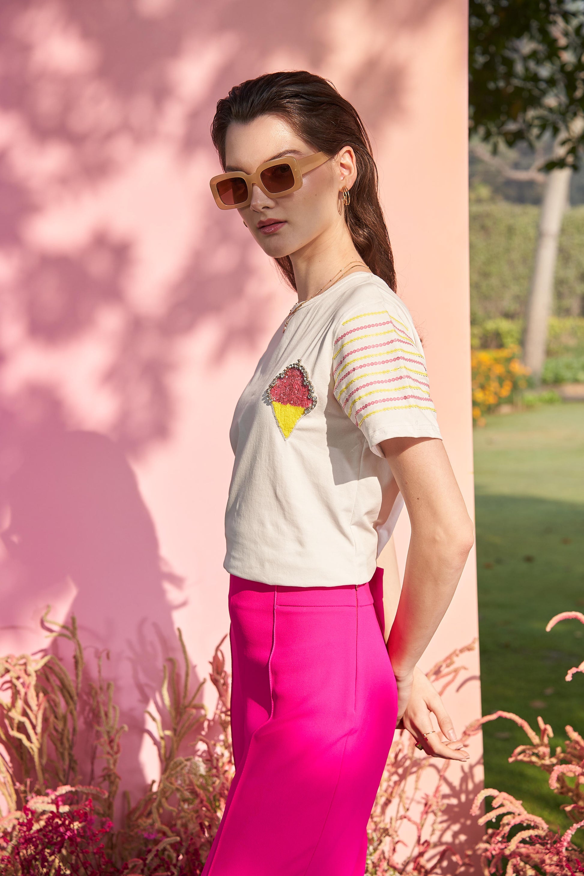 Description - All our T-shirts are hand made with organic cotton and little stretch of lycra .